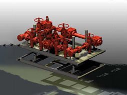 本管匯的材料嚴格執行API Spec 16C 和NACE MR0175標準規定。該管匯是由手動平板閥一套、液動平板閥二套、四通、三通、法蘭由壬等組成。
